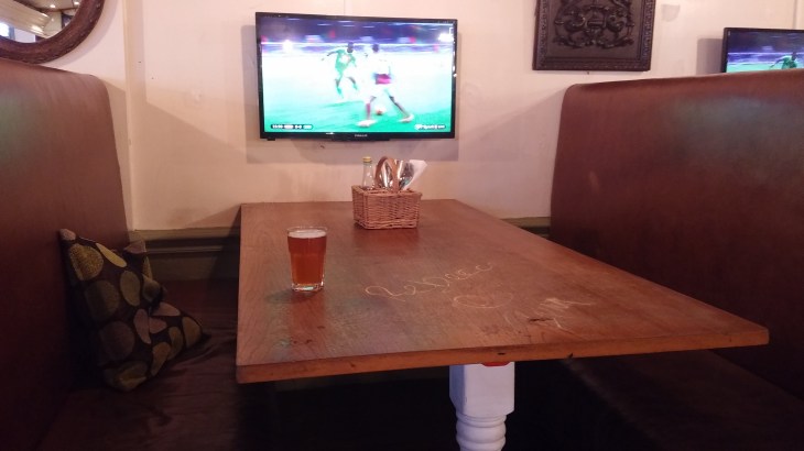 Individual TVs in booths, reservations chalked on table for fixtures starting hours later, poor beer (Twickenham, NBSS 2), £4+ a pint. I really should have gone to the White Horse, mixed recent reports of that notwithstanding, but I had better things planned.