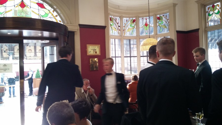 All human life was there. A party of toffs, 50ish beer tourists (er), normals and drunk Yorkies, as you’d hope for in a station. Places always seem better with marginal drunks, and there were some corkers on Saturday (6pm !). Simon would have loved it.