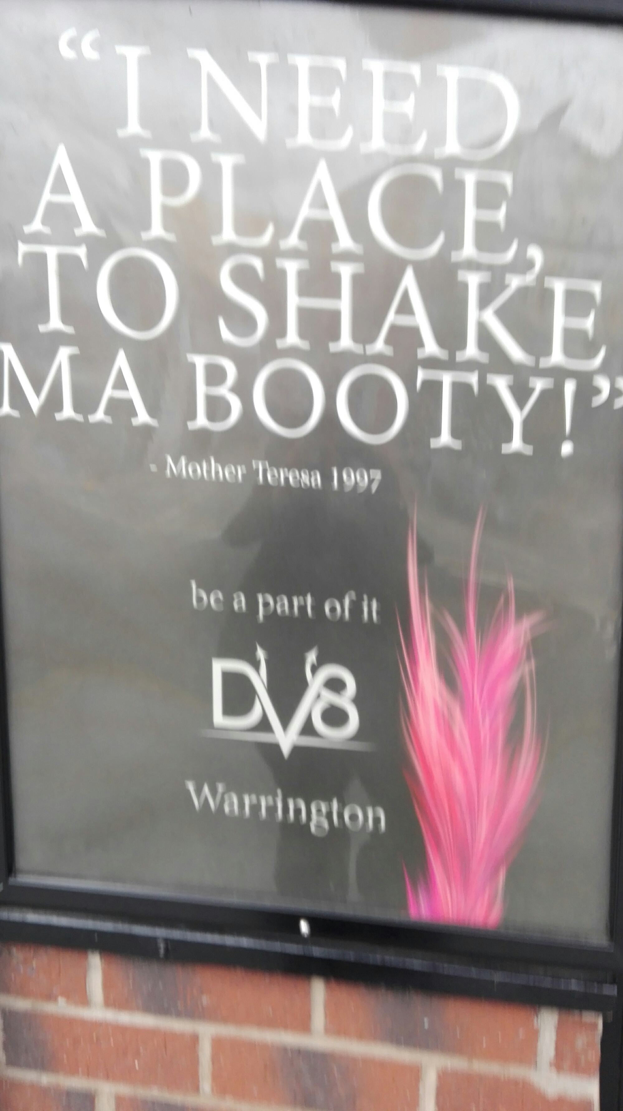 I think Mother Theresa did speak the quote on the poster. As I understand it she had quite a dry sense of humour, she will have said it for some humorous reason and the night club will have taken it out of context.