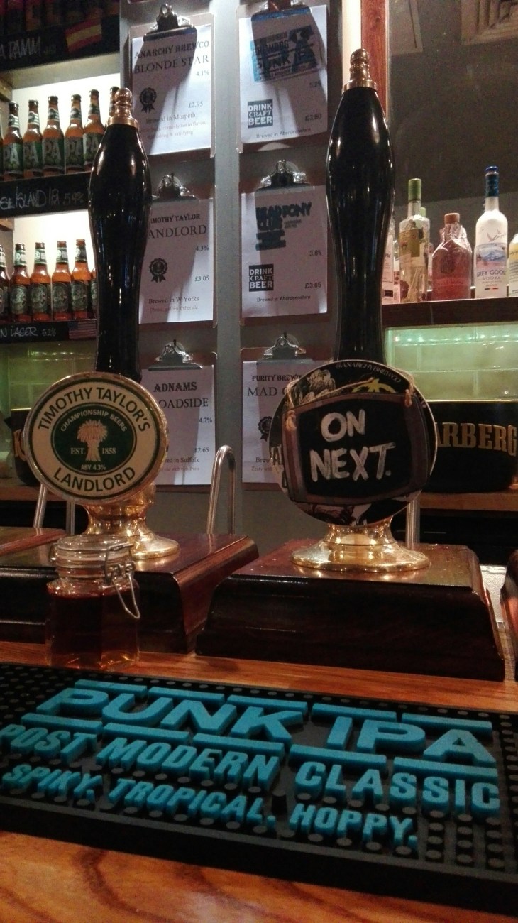 I was (genuinely) delighted when one old boy asked for “On Next”, and pleased to see a decent level of ale turnover. Anarchy, particularly Blonde Star, seem to be the beer of choice, but the rest of the range was your family favourites. Decent beer, ruined by that dreadful octagonal glass that is the hallmark of Stonegate (or is it Greene King ?).