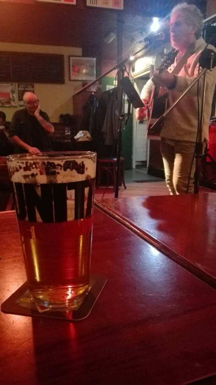 Grief it was dark round there, but inside was warm and cheery, as buskers nights always are. A room of mostly middle-aged blokes (says he) with those gorgeous Geordie accents doing a pretty fair tribute to Loudon Wainwright Jnr, John Prine and the Sons of Bill.