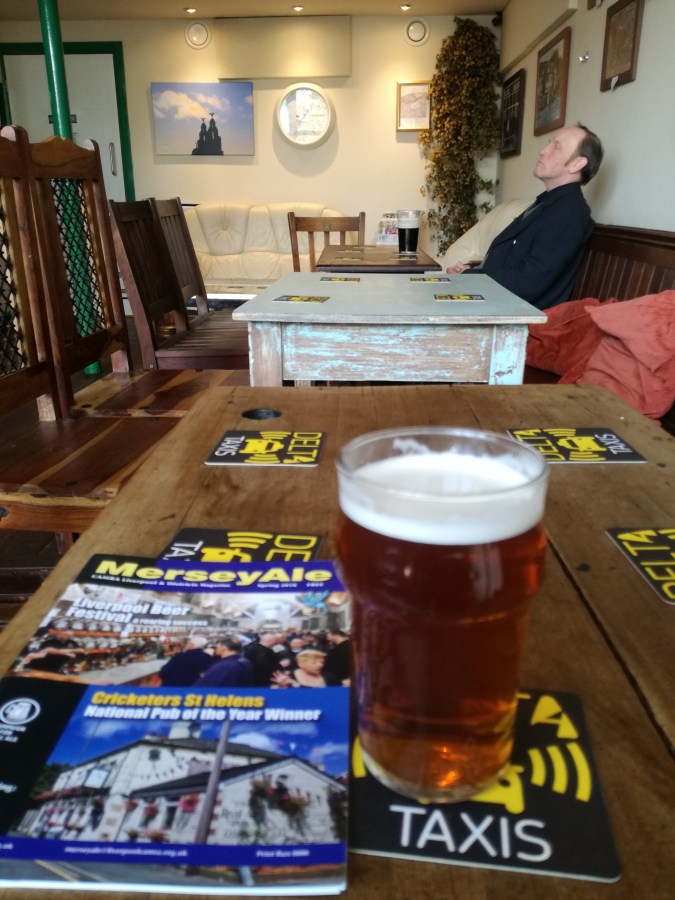 I bought a Day Ticket for Merseyrail at Southport station, and headed for the Beer Station in Freshfield, a smart leafy suburb which reminded me a little of Claygate. No plastic glasses here, though.