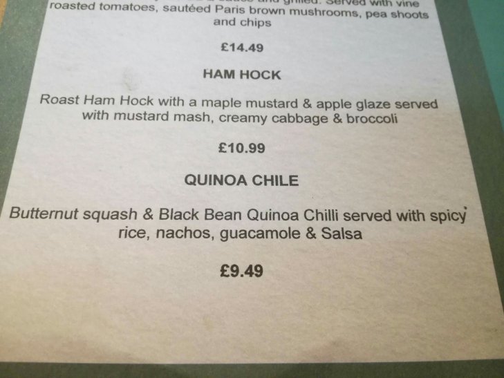 “The excellent Eggs Benedict was made with bacon rather than gammon, clearly a political statement.”