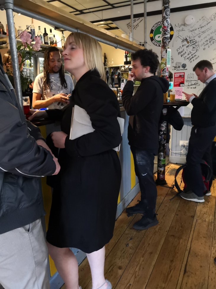 24 minutes later, I’d drunk half her beer (not as good as the Nor’hop on cask) . And started on her Pipers.