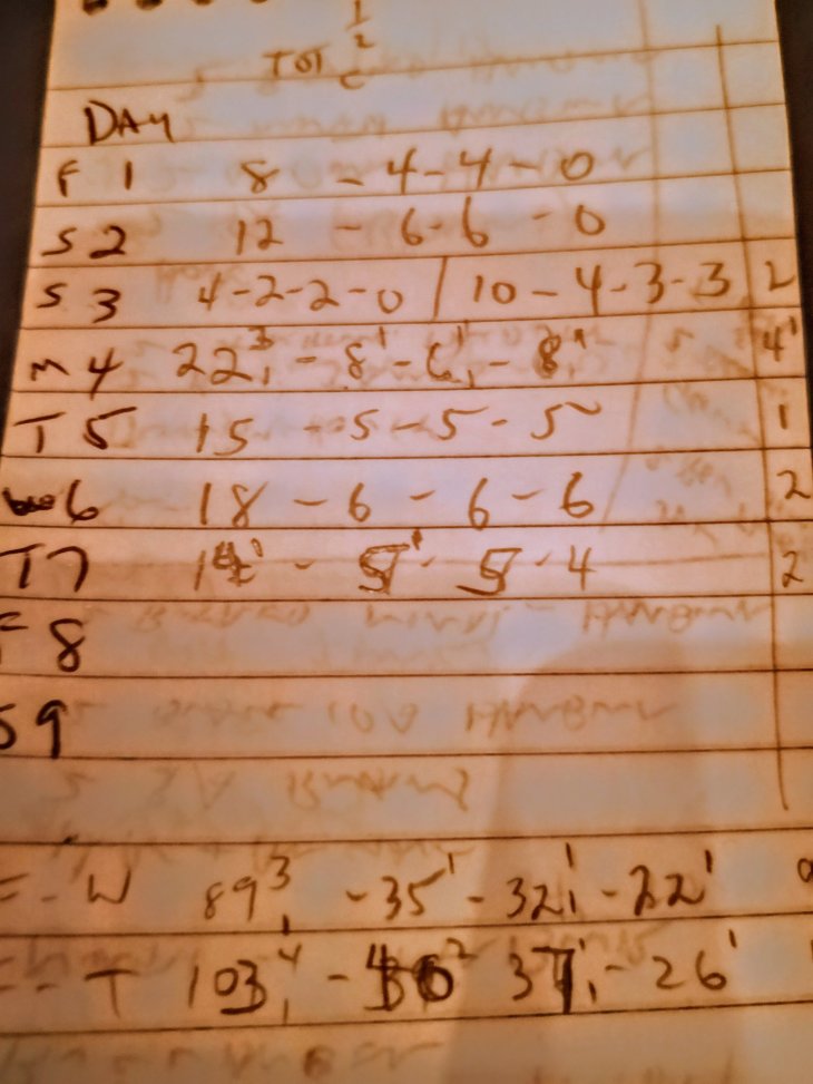 Do those notes mean that on day 6 a Winfieldesque 36 pints were sunk?