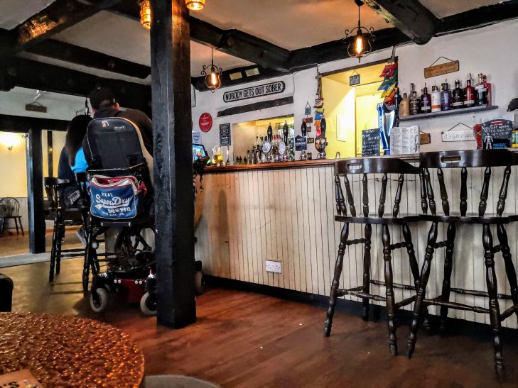 As you’ll see, it’s an unpretentious dining pub (“Basic fare” says Trip Advisor Andrew, £2.70 off-peak presumably) with proper seating.