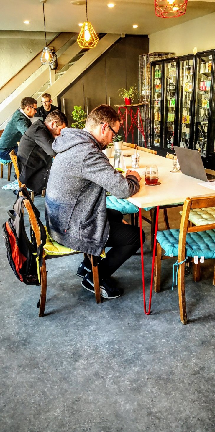 Paul succumbed to the Cloudwater coffee, we joined the communal table, and chatted to a Landlord (?) I can only describe as a gem.