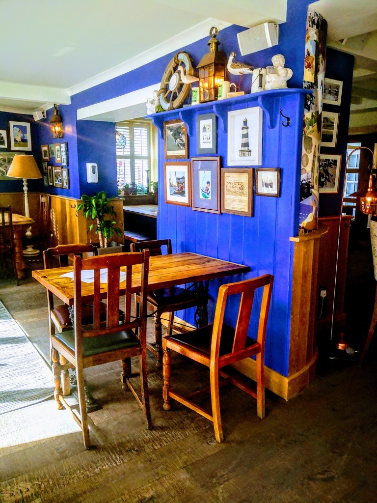 So we had to go on-line and book a table for a half at midday, even though the Lulworth Cove Inn claimed earlier opening. Yes, we could take our chances on an outside table, but it’s a long journey for nothing.