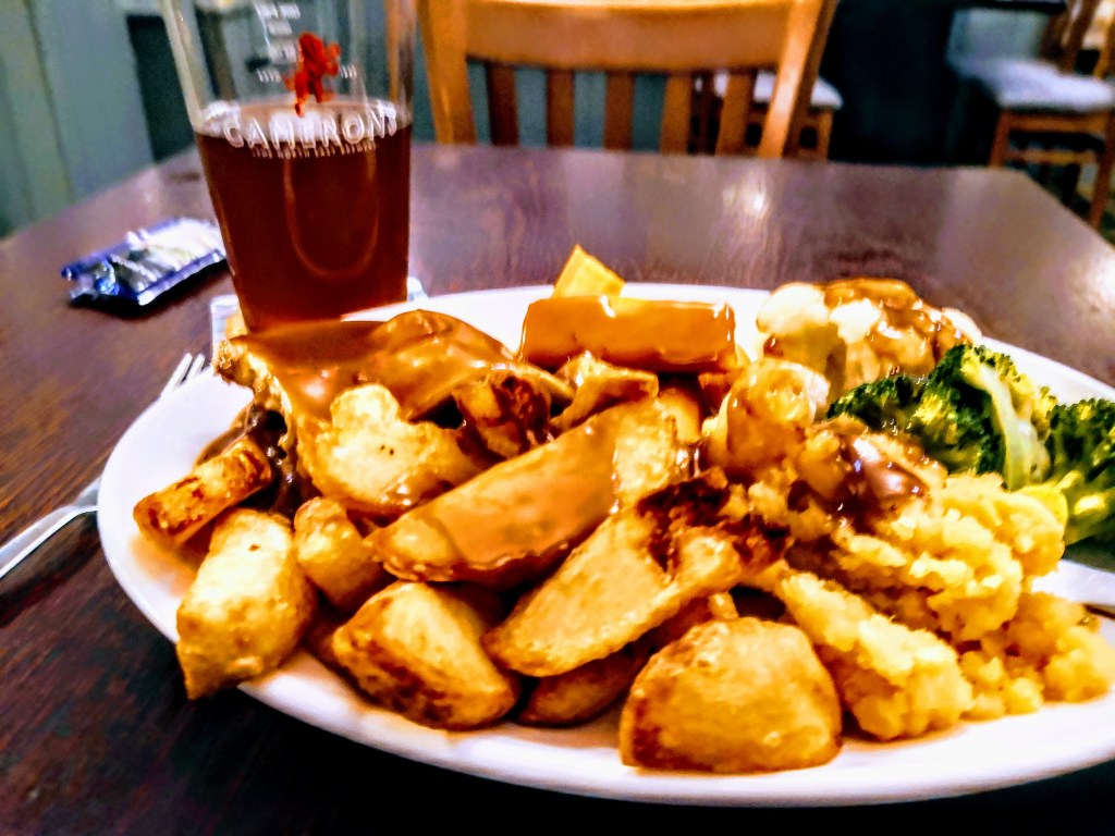 Well, it was wonderful. Steak and Guiness pie, short crust pastry, chunky chips, a week’s worth of veg, homemade gravy. As good as haute cuisine gets.