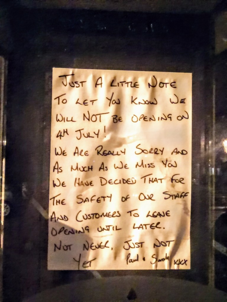 Many people have a problem with all this; I’m just grateful I can still visit pubs I expected to be closed well into 2021. Perhaps they won’t last till then.