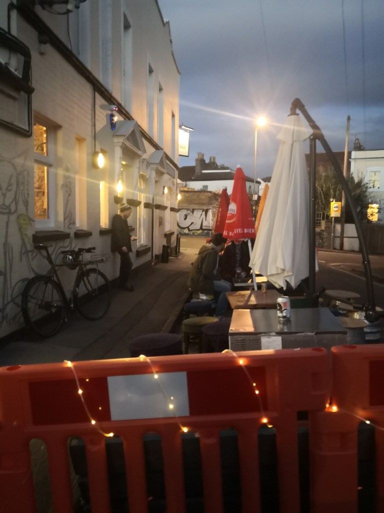 More bikes than mobility scooters at the Coronation, finally re-opening inside now they’ve got the divider boards up. Well done to the council (whichever one it is) for letting folk sit in the road in balmy Bristol.
