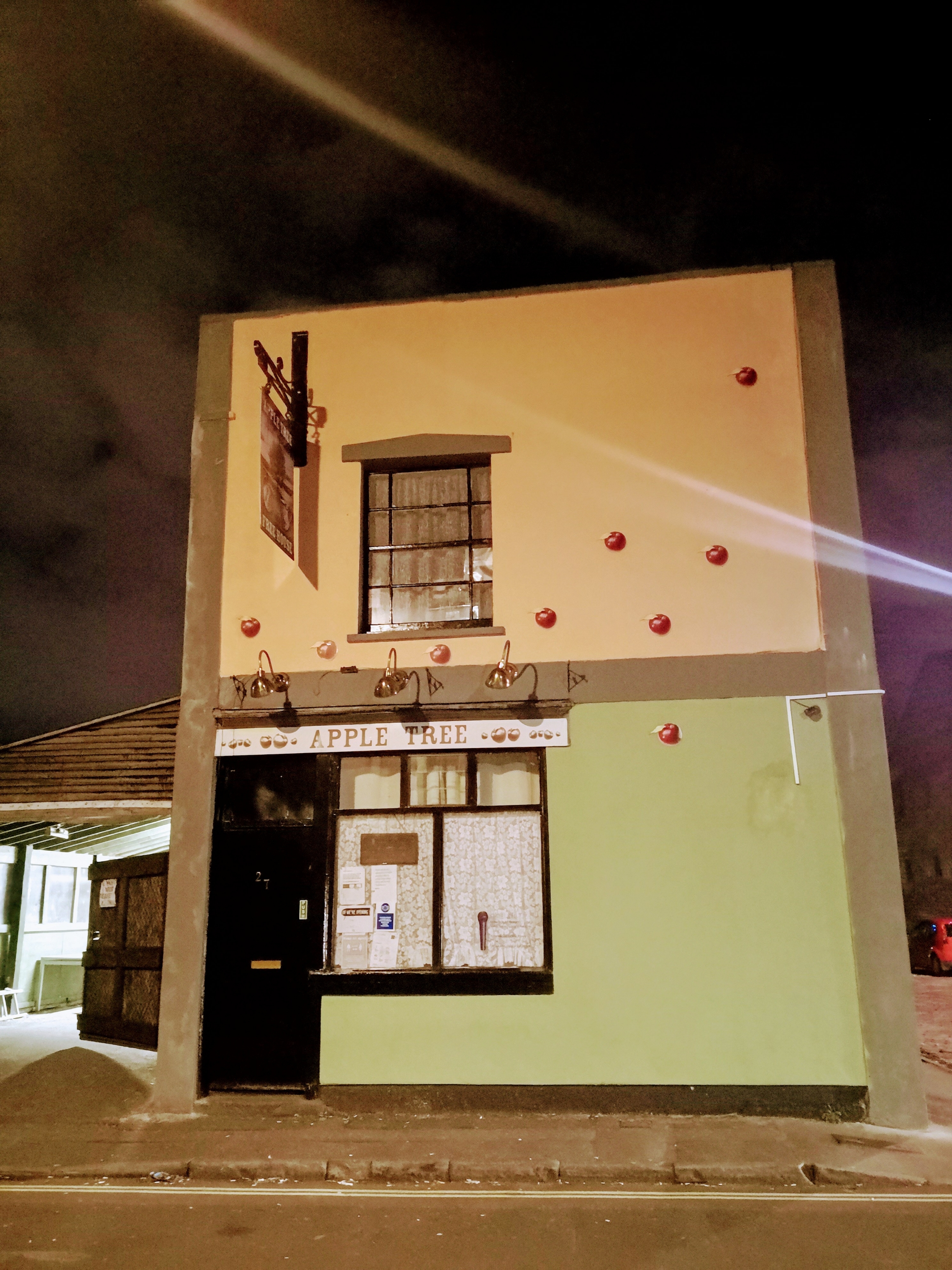 The Apple Tree (keg, “lively”), was the pub we could see from our campervan as we braved a night wild camping in a big city. Tucked between city farm, closed church and light industrial estate, we slept soundly on Saturday night.