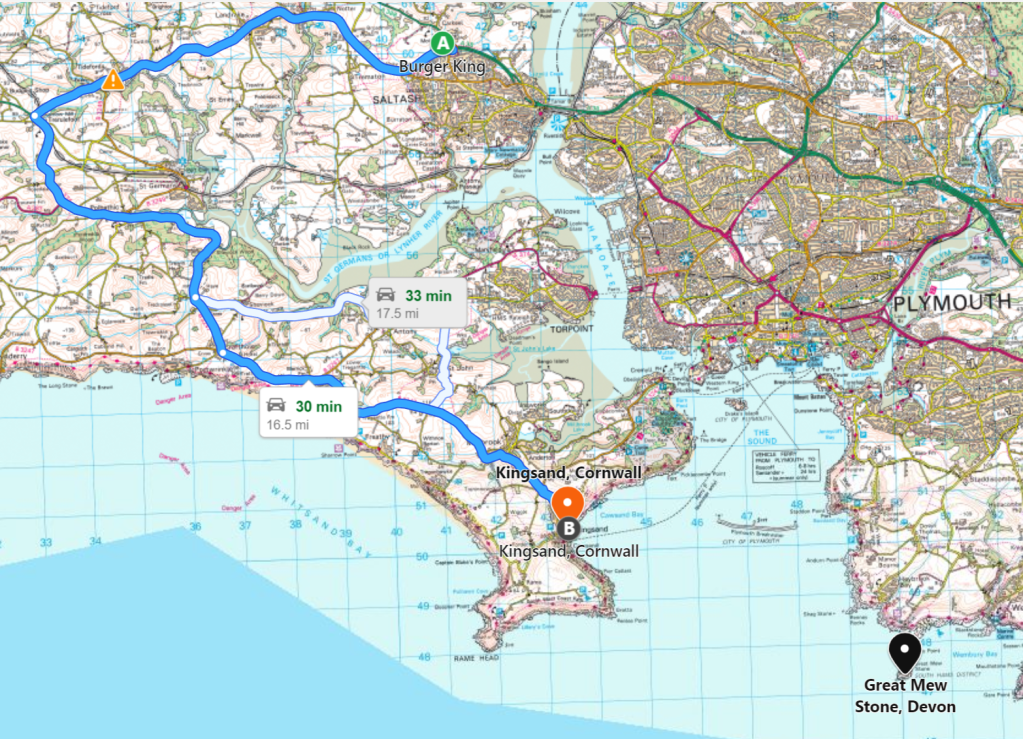 About the only thing I can make out in that horrid OS Map is the new town of Burger King just north of Saltash. 😉