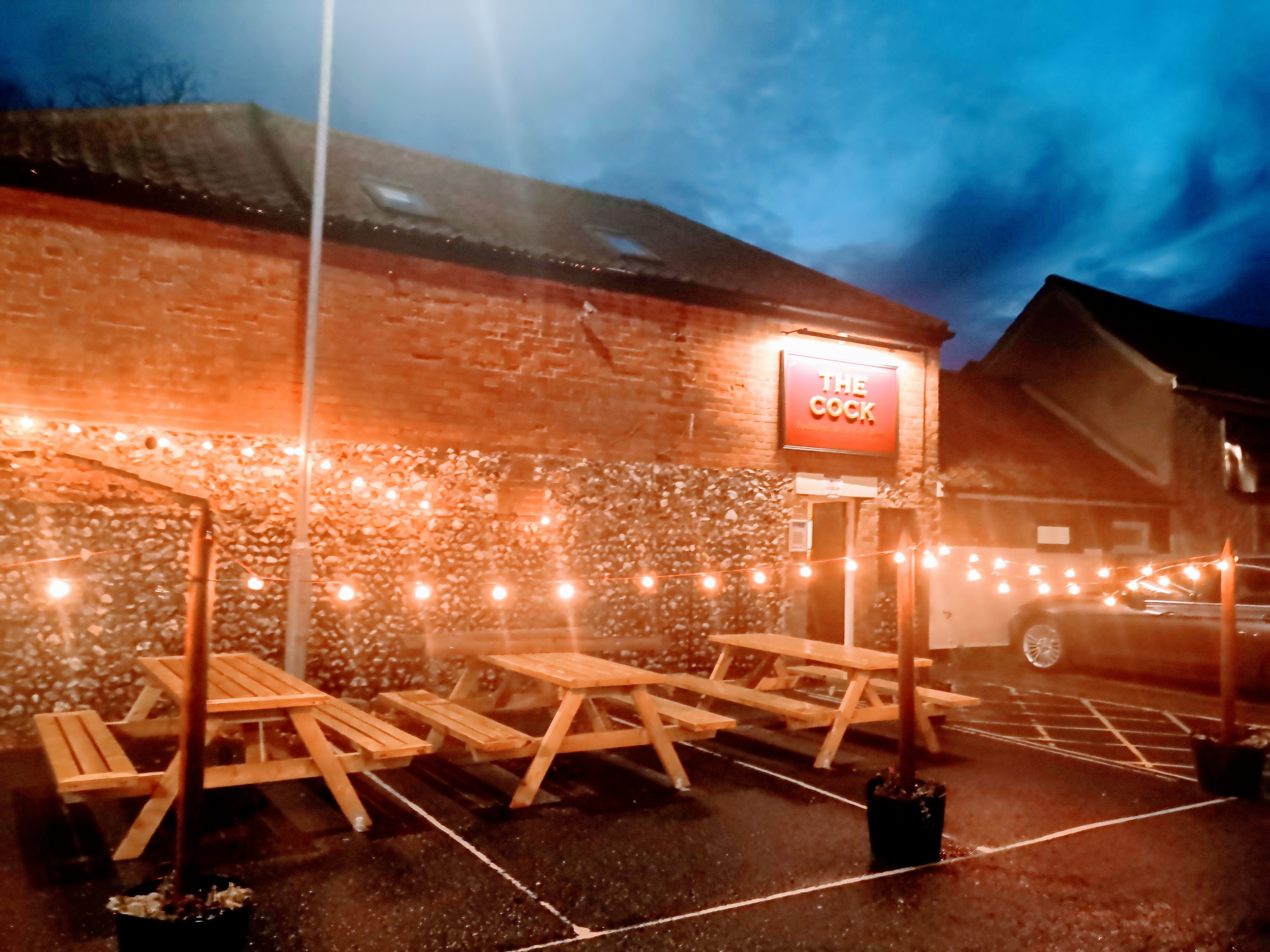 Our Dereham evening continued five minutes from the Cherry Tree at the Cock, busiest pub of the night, and possibly the whole of West Norfolk.