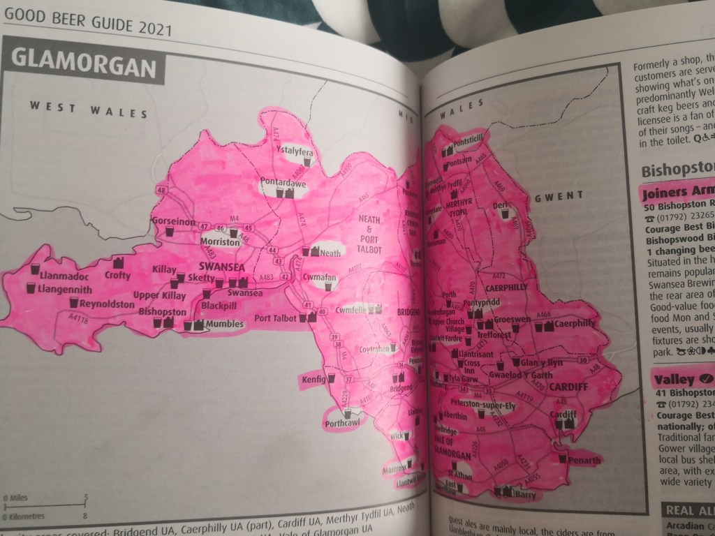 If you’re in England, of course. In Wales, you CAN visit the thirty pubs I need in Glamorgan, as long as you eat a raw leek with each pint or something.