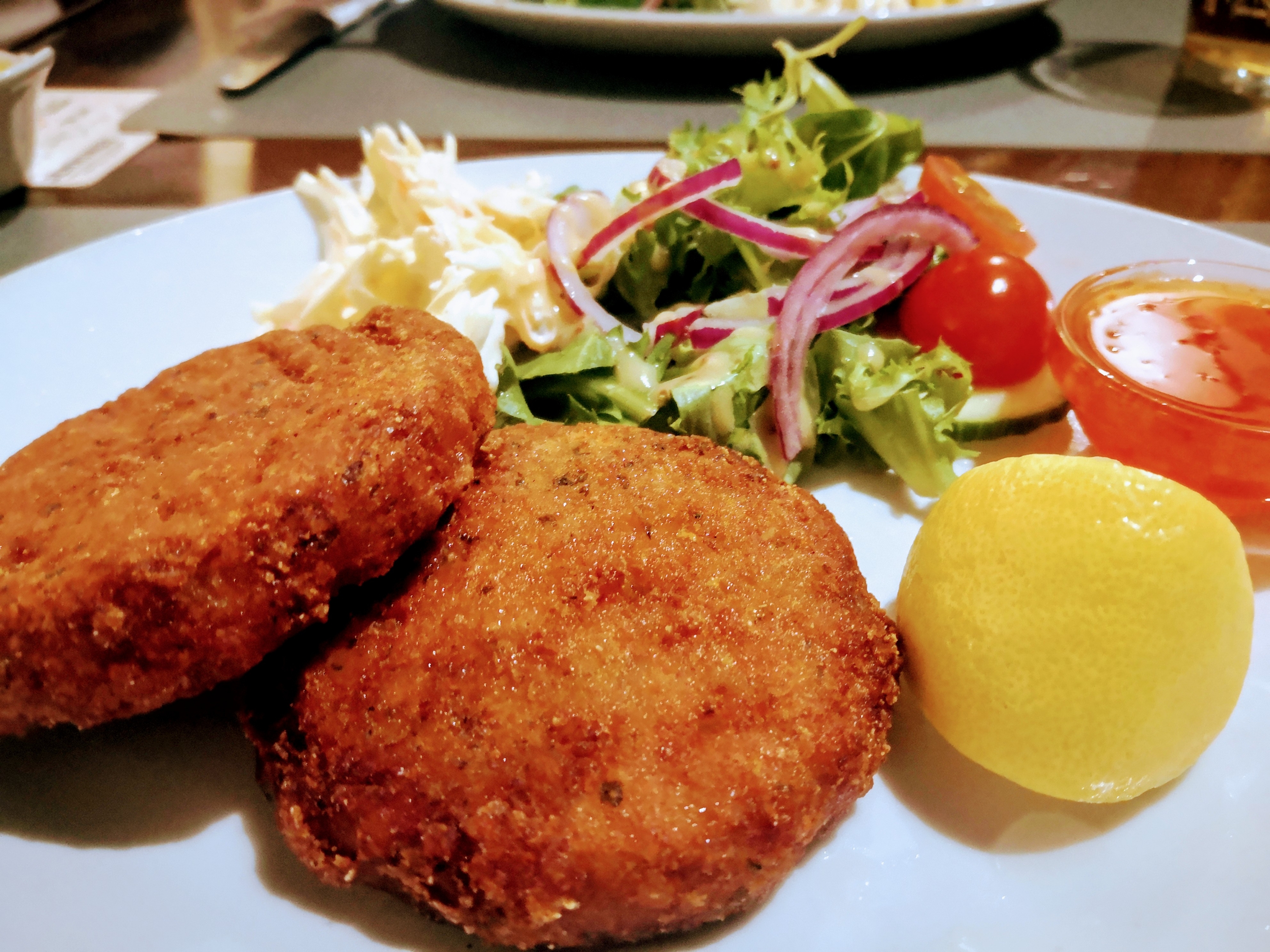 At 6pm the Thai fishcakes came and they were great, especially the chips you can’t see.