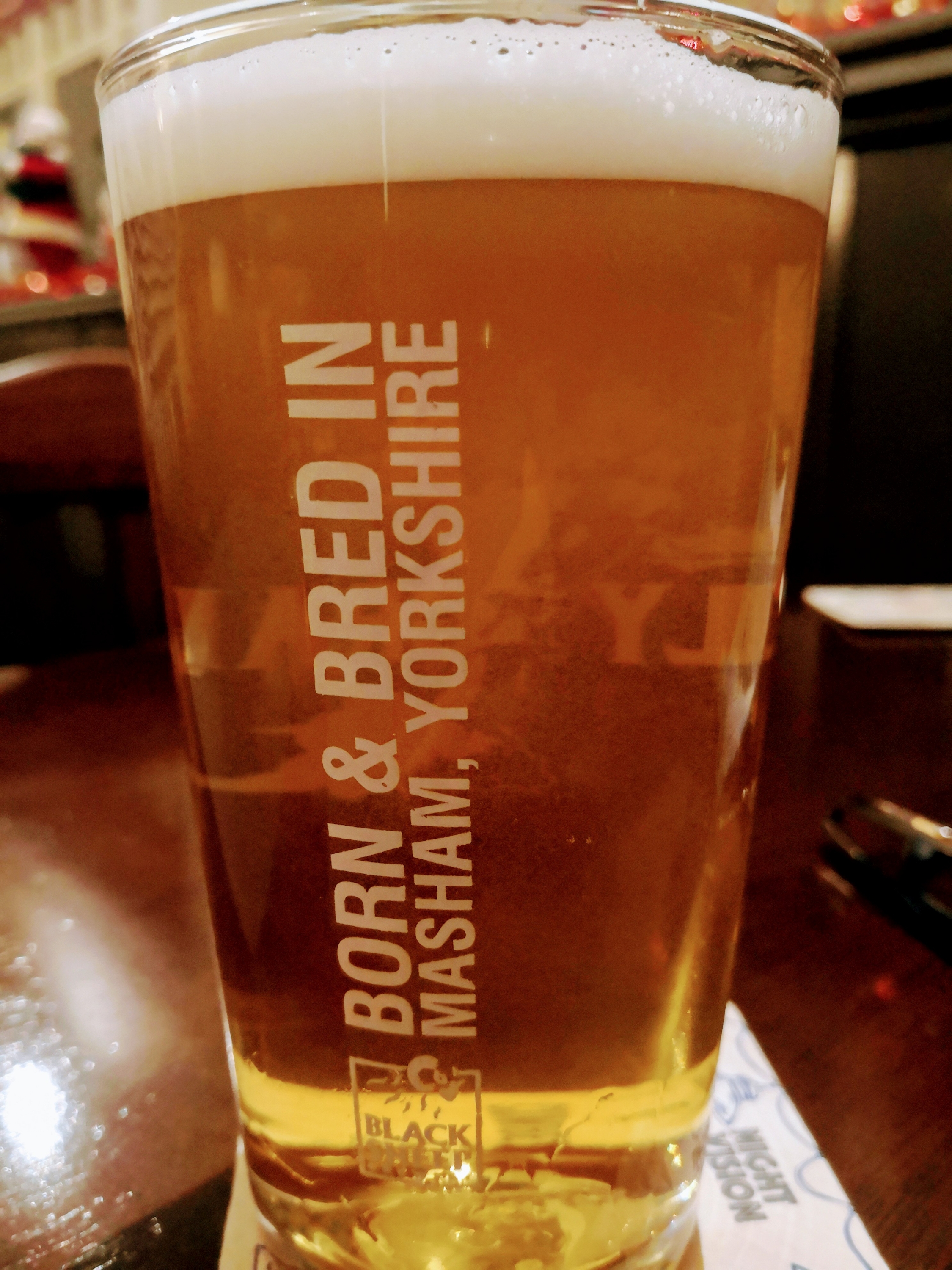 Pints of Justinian arrived at 17:10. Crystal clear and sherberty (?), aided by rare Black Sheep glasses, oddly. Five pints into The Return of Pubs (II) and not one of them below NBSS 3.5.