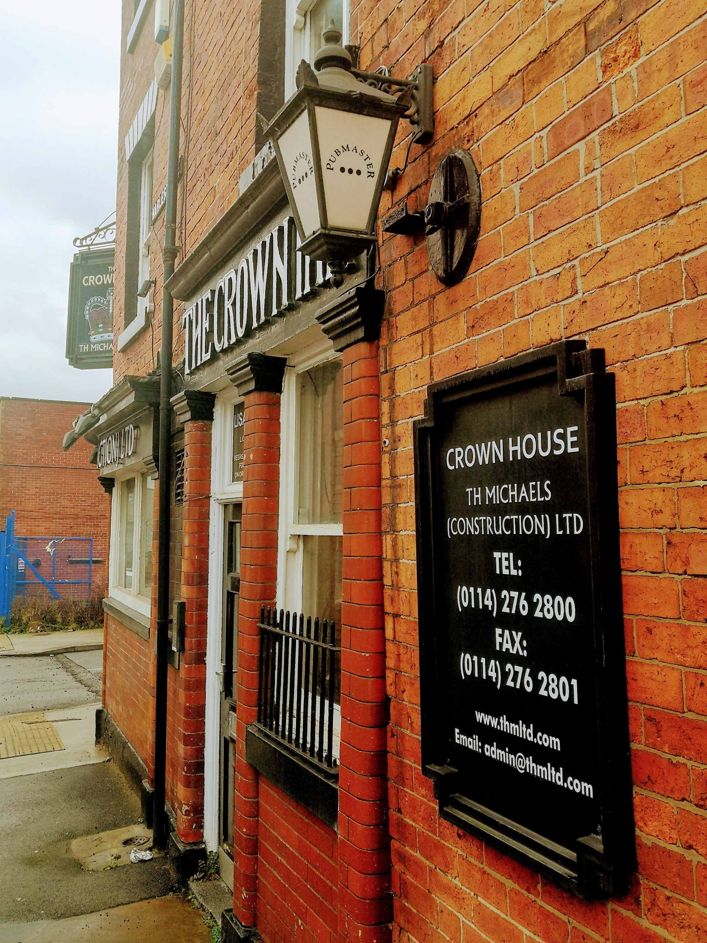 I’m in full flow now, scouring the What Pub map for more closed treasure. TH Michaels deserve credit for skilful retention of the Crown‘s sign and Pubmaster lamp, both of which would look great on our house. Mrs RM disagreed.
