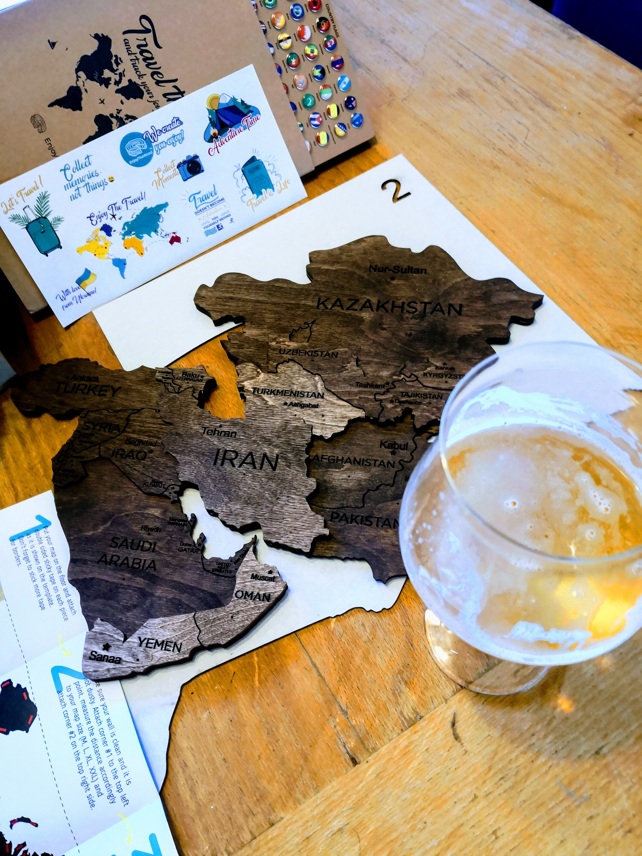 Talking of Mrs RM, she’s just invested in a weird world travel map to highlight the places she hasn’t been to yet. Note the obligatory murk (probably a Melbourne Dank, beer nerds).