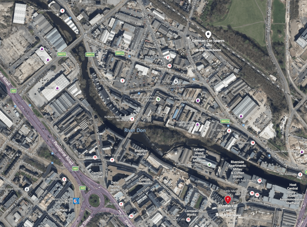 Just a short walk round the industrial bits of Kelham Island, away from the artisan bakeries, brewery taps and (vegan) flea markets.
