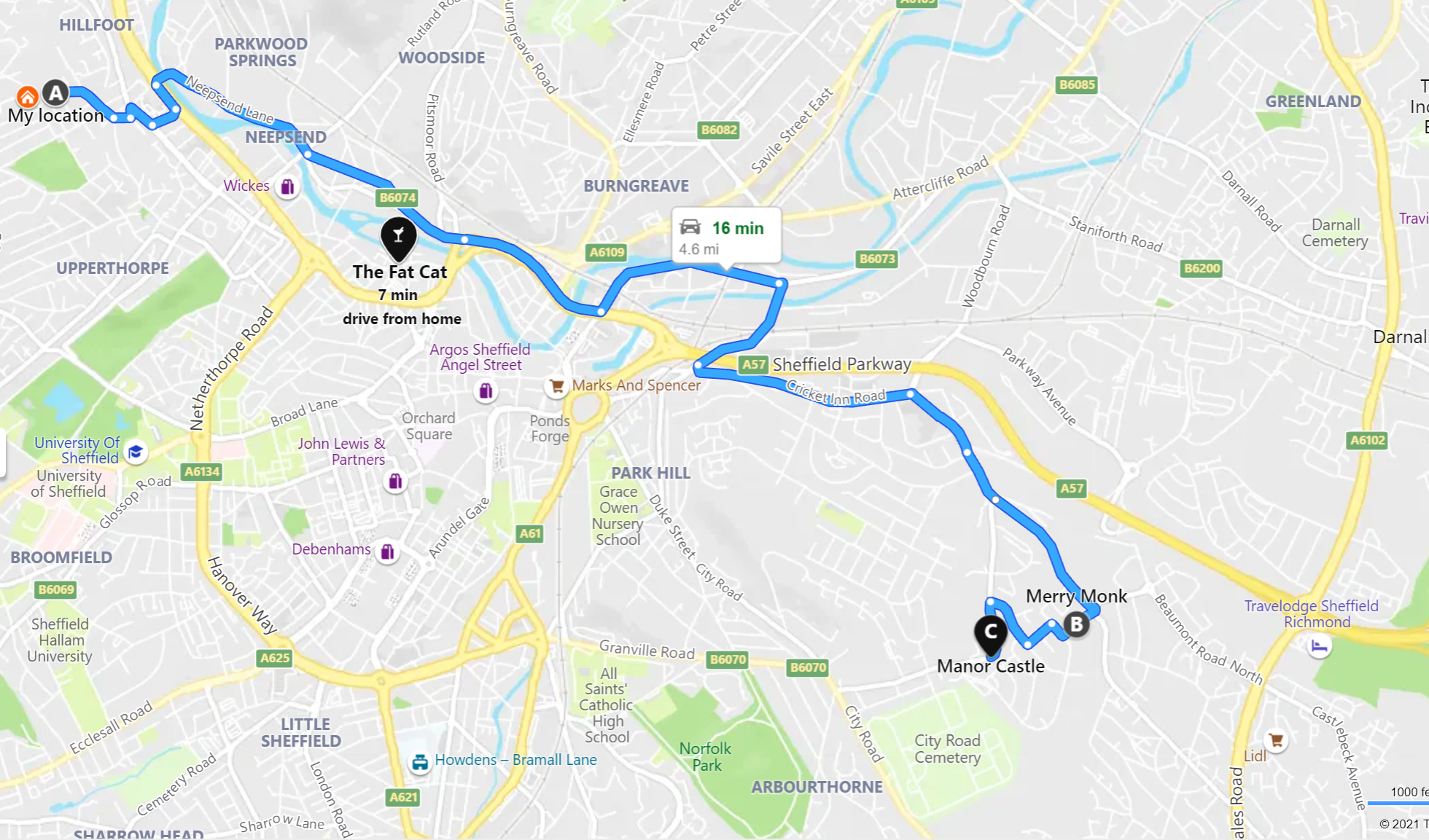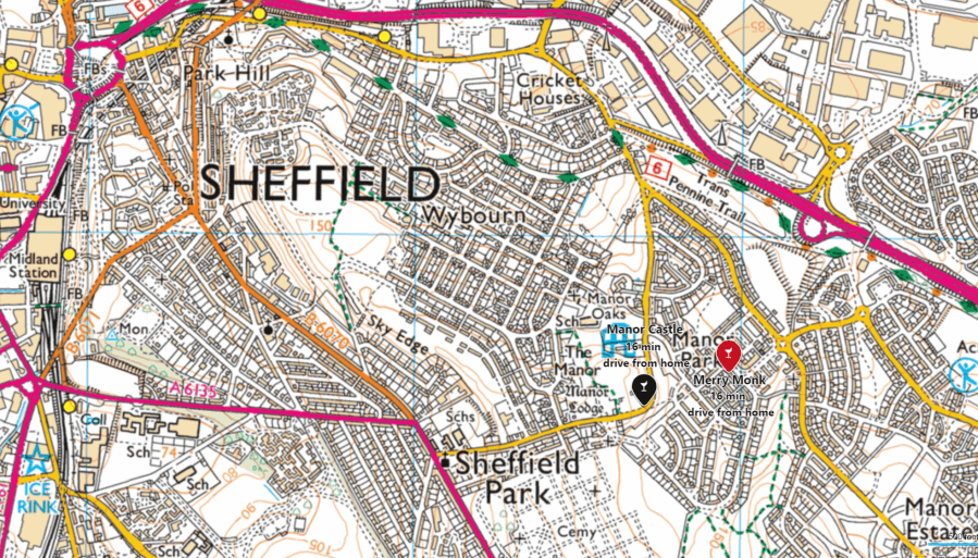 OK, it’s not in the greatest area of Sheffield, strewn with rubbish and dog mess, but there are refreshment stopes en-route…