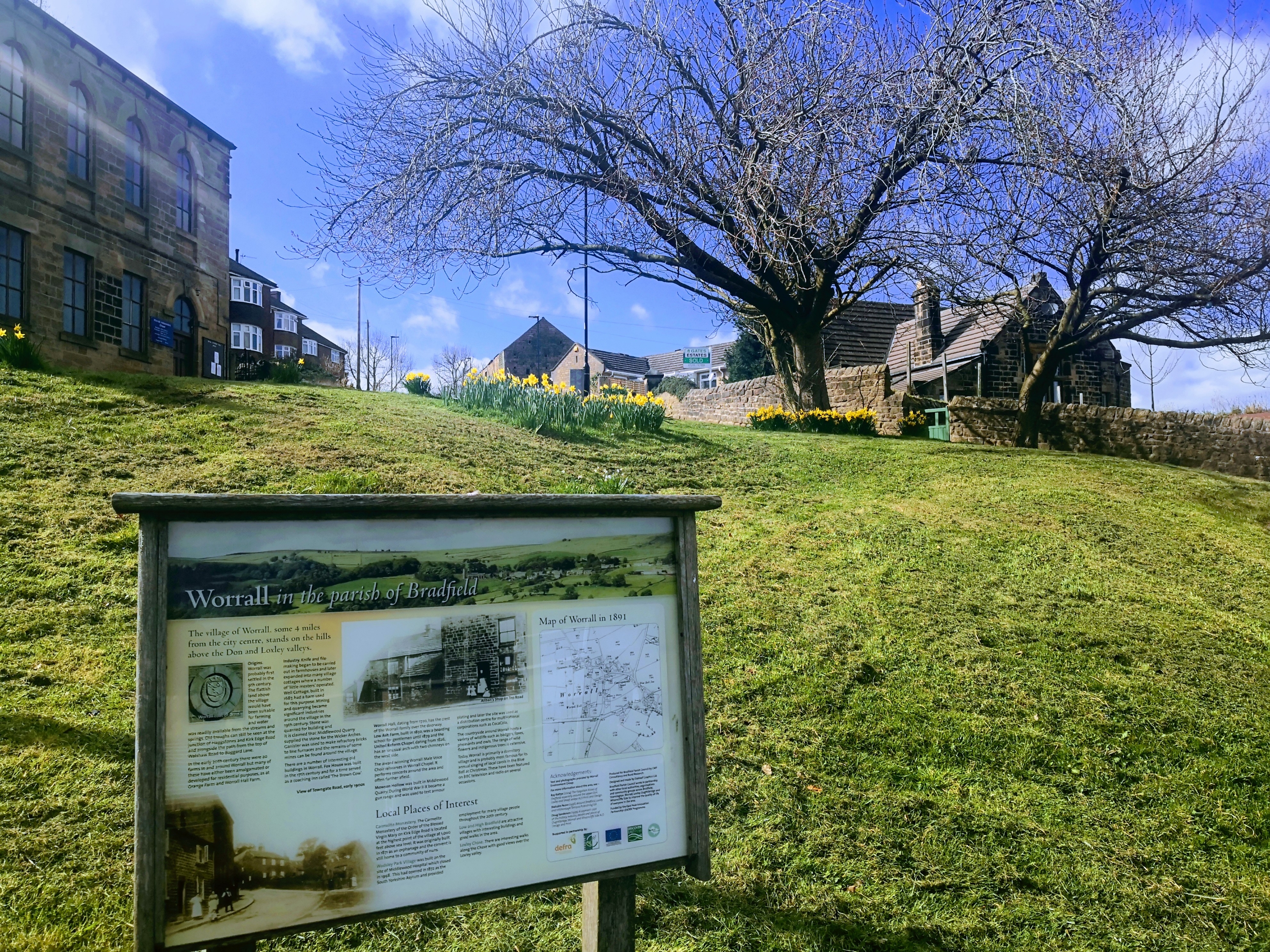 Worrall has a picture perfect little green and a village sign that isn’t covered with dead insects. Draw your own conclusions.
