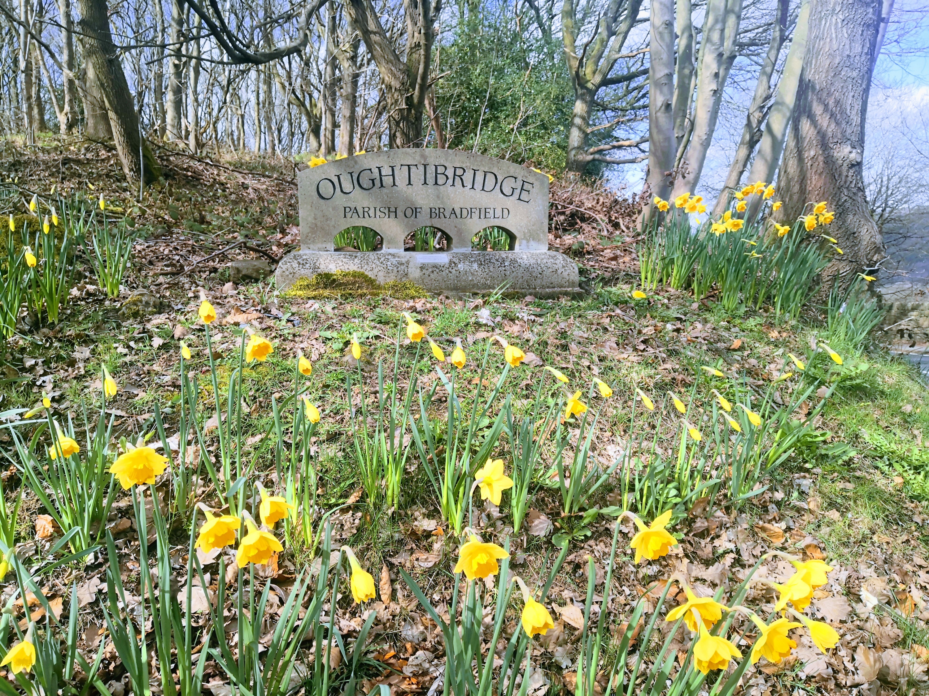 This week we walked from Worrall (pop. 1,306) to Oughtibridge (pop. 3,584) without Mrs RM being attacked by the killer goats that plague her rural ramblings, and admired the daffodils if not the rather overrated Hagg Stones.