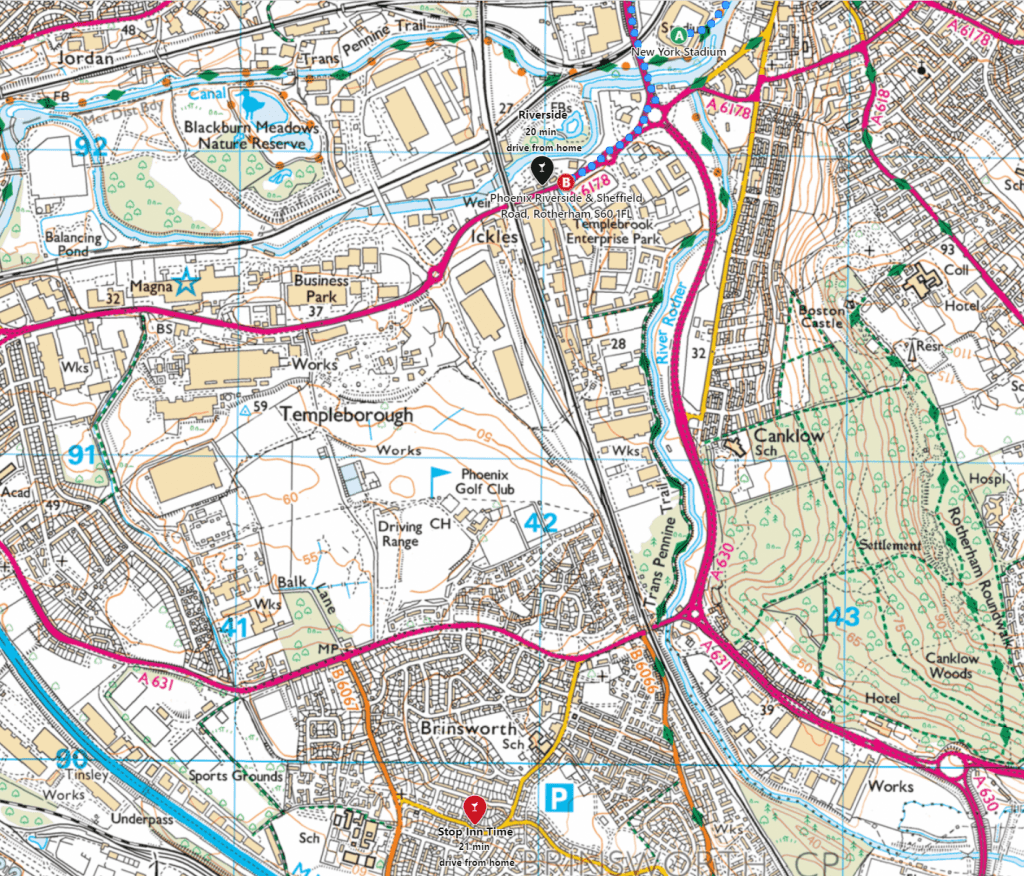 I was determined to get full value out of it. If I walked into Rotherham central via the Trans Pennine Trail (apparently) I could enjoy the delights of South Yorkshire’s premier town before catching the tram back.