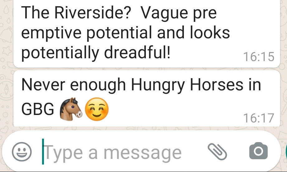 Well, why not ? The quality of Greene King IPA has been a minor revelation since re-opening and it’s towns like Rotherham that actually put Hungry Horses in the Guide for “effort” (See also : Spalding, Colne).