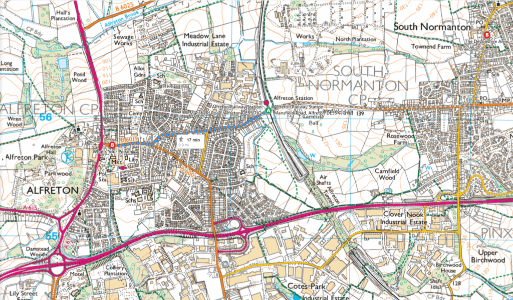 After several months of trains running window seats only it was quite a shock to find standing room only on a train again, and despite widespread mask wearing I was pleased to break my journey after 25 minutes at Alfreton.