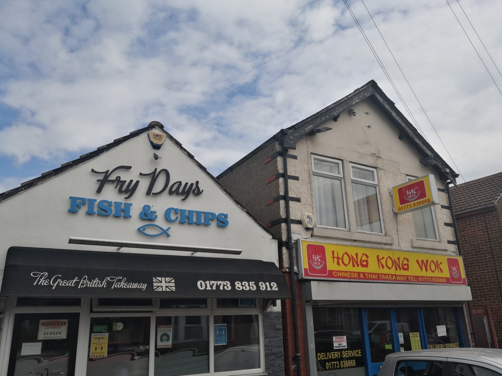 Some good takeaway options for the health freak here; I rate the names of the chippy and the Chinese 6.5 out of 10.