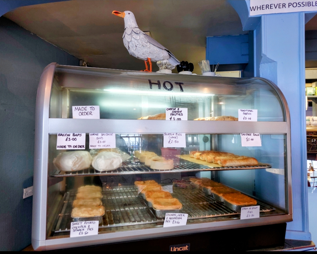 Scandalously, the actual Craignure Inn was shut at 09:30, so it was Blazey’s Cafe with its daring hidden Guinness, flat whites and prominent “made-to-order” Lorne Sausage baps.