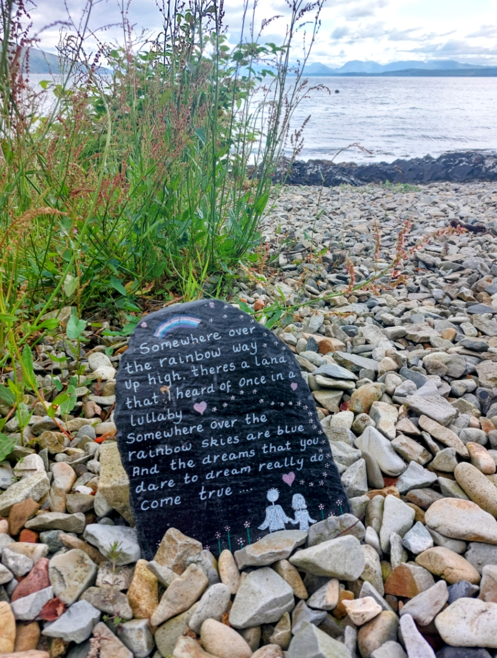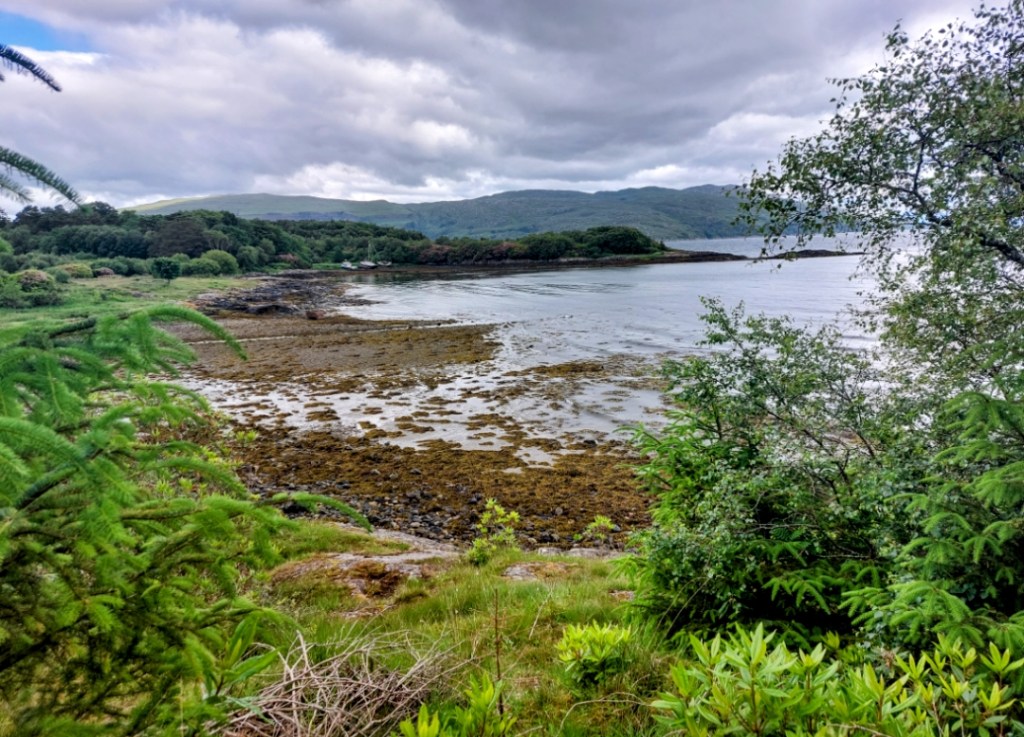 Mrs RM found some work to do having worked out the WiFi code, so I took a stroll along the fairy grotto along the coast, filled with inspiration sayings, gruff anglers and views to the hills.