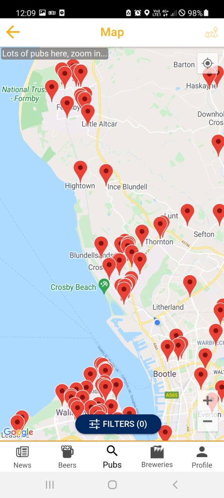 Seven pubs to tick on Merseyside, presumably all micros, and a chance to reacquaint myself with the Sefton coast, which isn’t short of pubs. Or golf courses. Or wine bars. Or pizzerias.