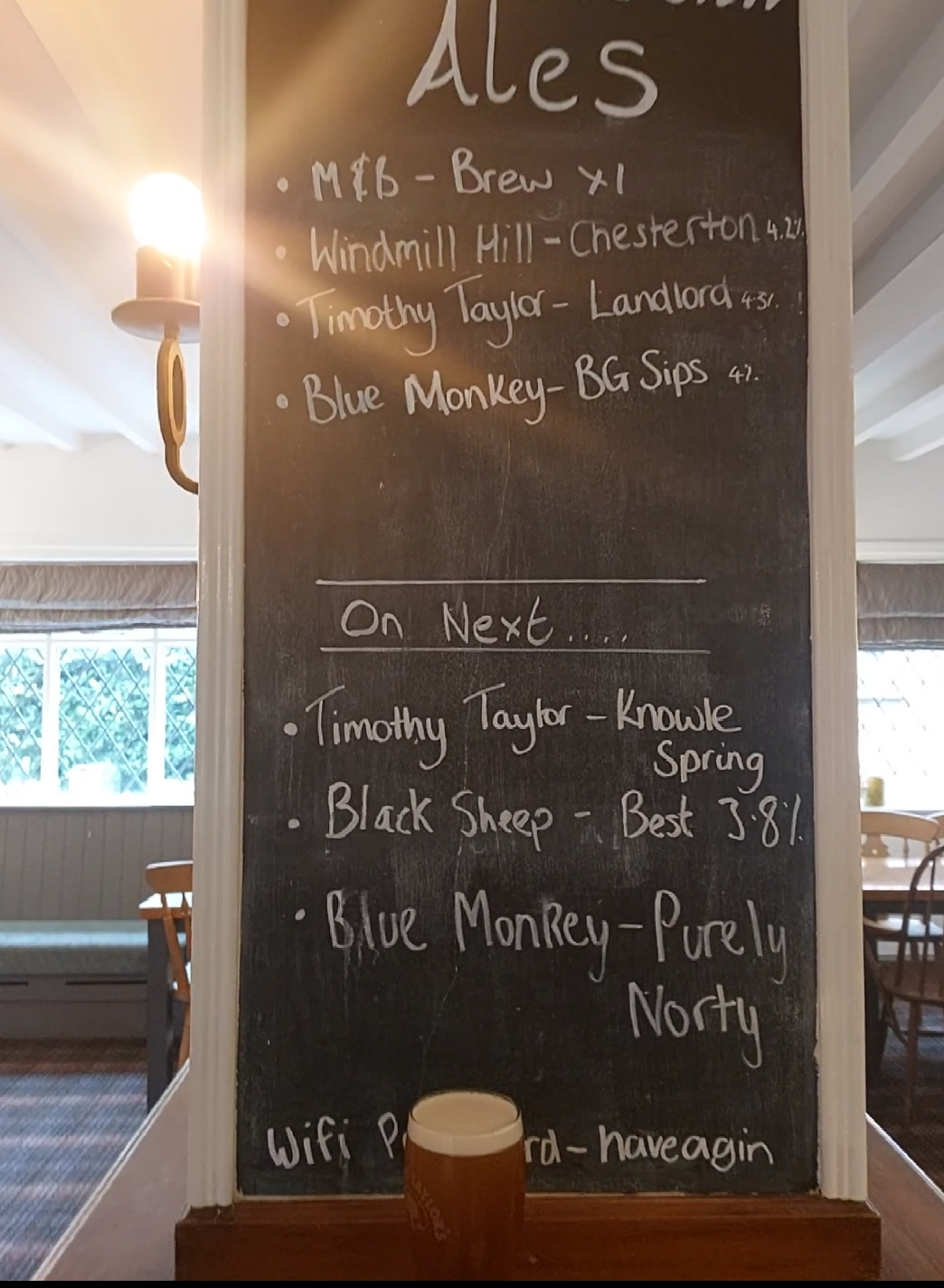 Good job there’s a beer board as with the villagers sitting in front of the pumps* I’d never have spotted it any ended up with a Landlord, rather than a Brew XI in Landlord glass. Cool, well conditioned, creamy (NBSS 3+).