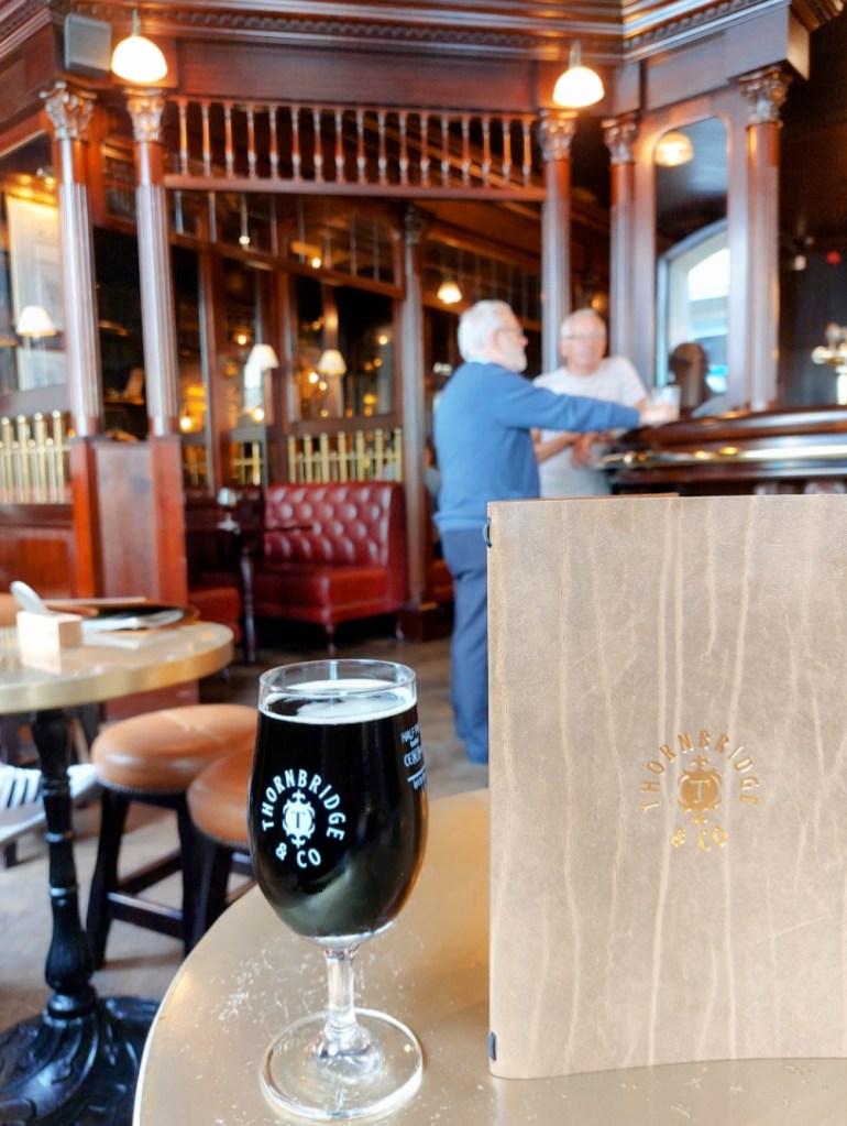 Yes, Thornbridge‘s latest venture into the beating heart of our cities (see also: Birmingham and York). was doing a roaring trade at 15:45 on a damp Thursday, full of casual afternoon drinkers as well as the odd skiving futures trader (what future ?).