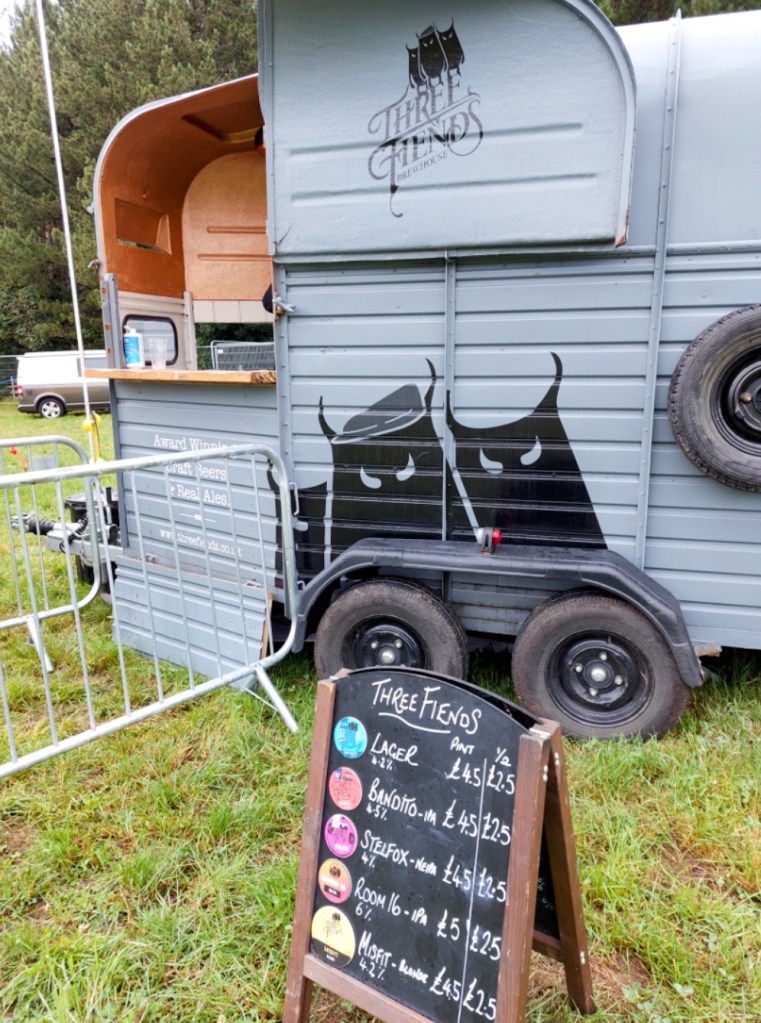 Well, Mrs RM discovered a 6% IPA from Three Fiends of Meltham in their travelling horse box that would have been great if the grass had been flatter and not sloping.