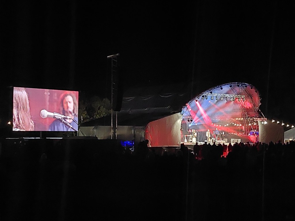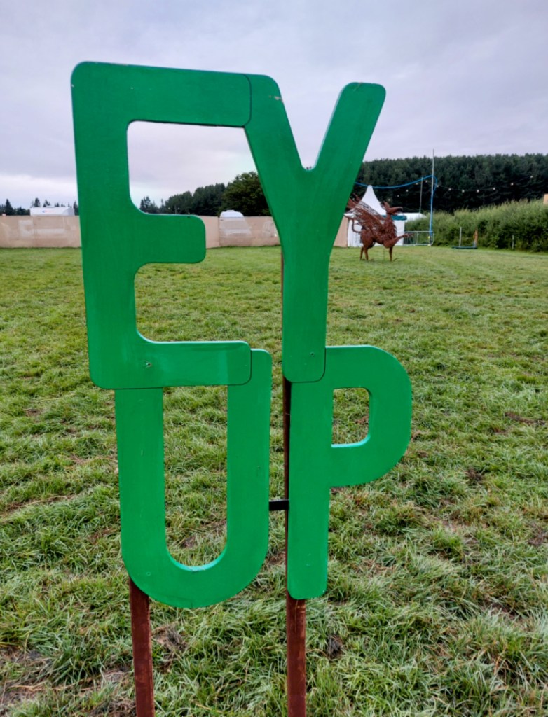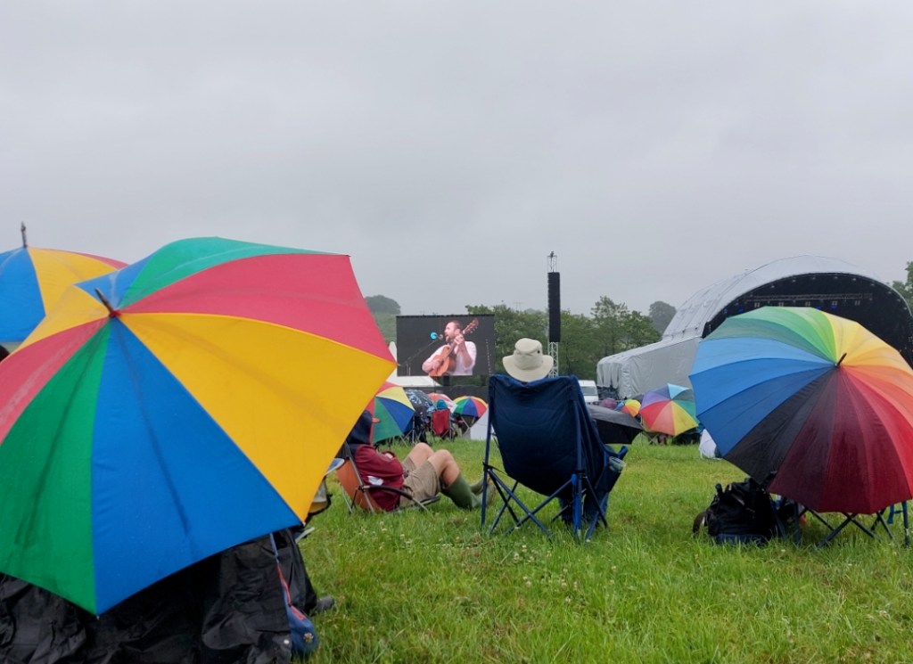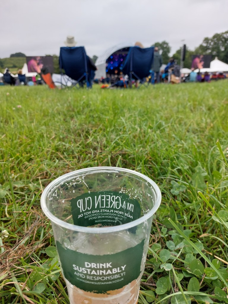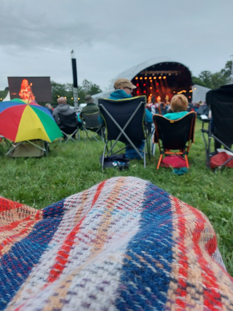 The entire crowd of about 2,500 had each brought their own pop-up seat, with holder for plastic glass and halloumi wrap. It’s a good job Mrs RM bought a fleece from the vegan wool stall as it was freezing. #WhatSummer.