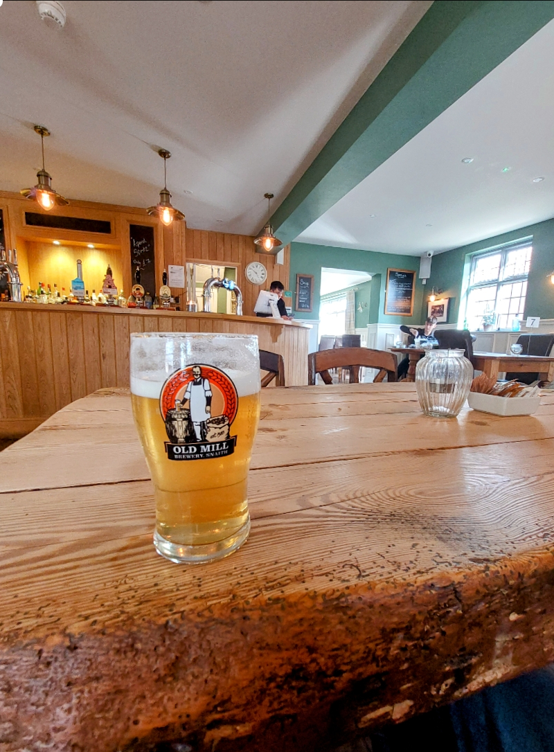 I plonked myself down and downed a crisp, tasty (NBSS 3.5+) half of local Ainsty in about 3 minutes, admiring the chunky table,