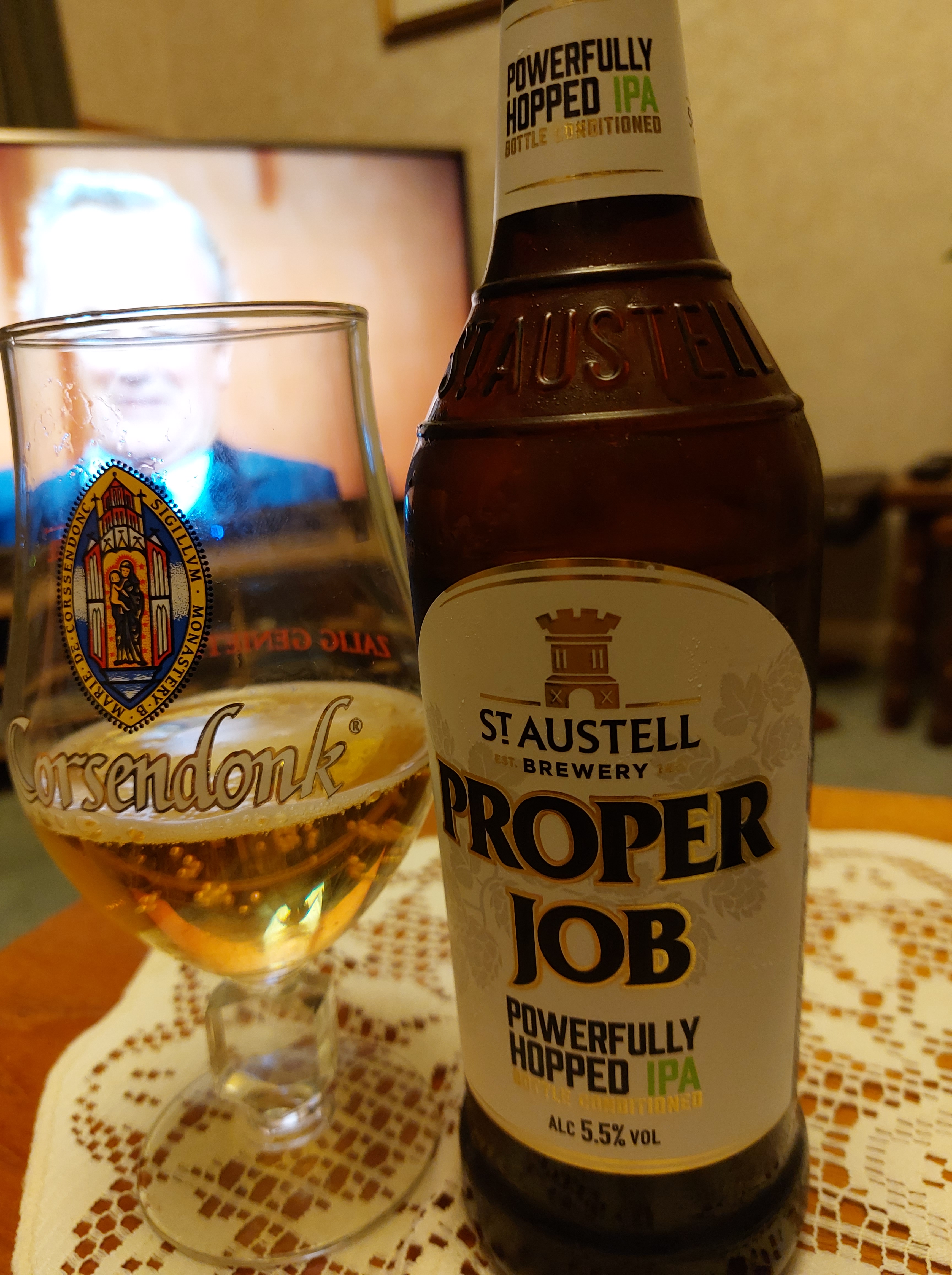While the Spencers slunk up the lane home, I popped in Southborough’s Tesco Express. A large bottle of Leffe, Doom Bar, or Proper Job. Blimey, Proper Job is overrated, but then drinking beer at home IS a mortal sin so I got what I deserved.