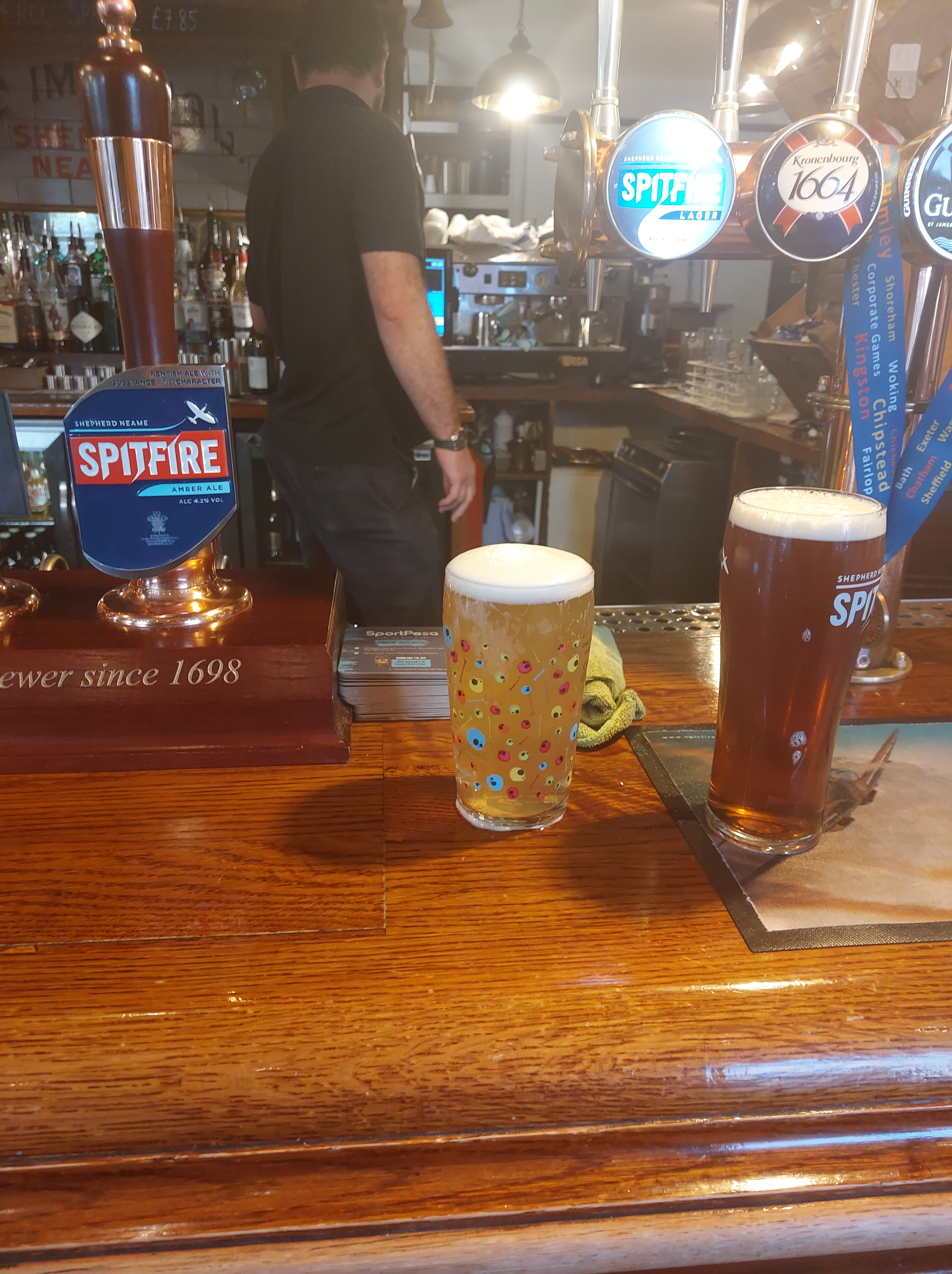 I’s really fancied a Spitfire, but felt oddly worried by the lone handpump with the Whitstable Bay clip turned round and a keg range saved only by Neck Oil. And what on earth is Spitfire Lager etc. etc.