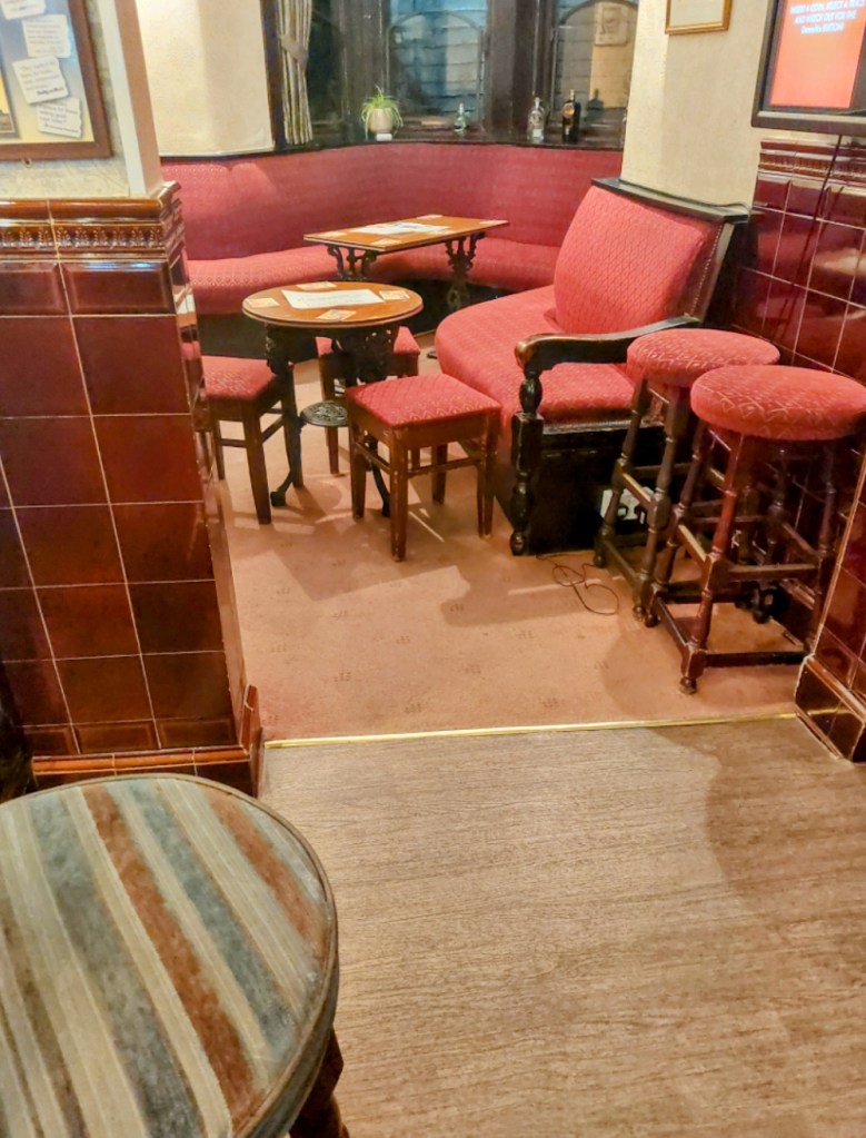 The Princess Royal didn’t last long in the Guide, and seems best known for it Gilmour windows, but we take corner locals like this for granted at our peril, which is why it was sad to only see a handful of customers at 20:48, when pubs should be at their busiest as folk avoid appalling TV.