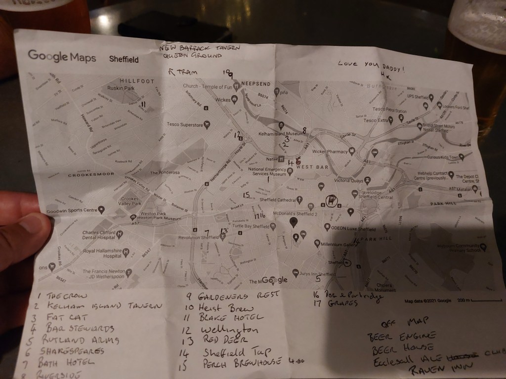 One last pint with Mick before he hit the Doom Bar in Sheffield’s iconic Wetherspoons, and one that wasn’t on his map.