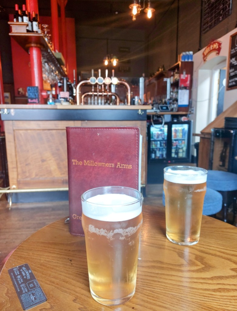 The Millowners is clearly “storeroom converted to museum pub”, bit like the places in Dudley and Beamish, but it’s well done and Stafford Paul will admire the seating,