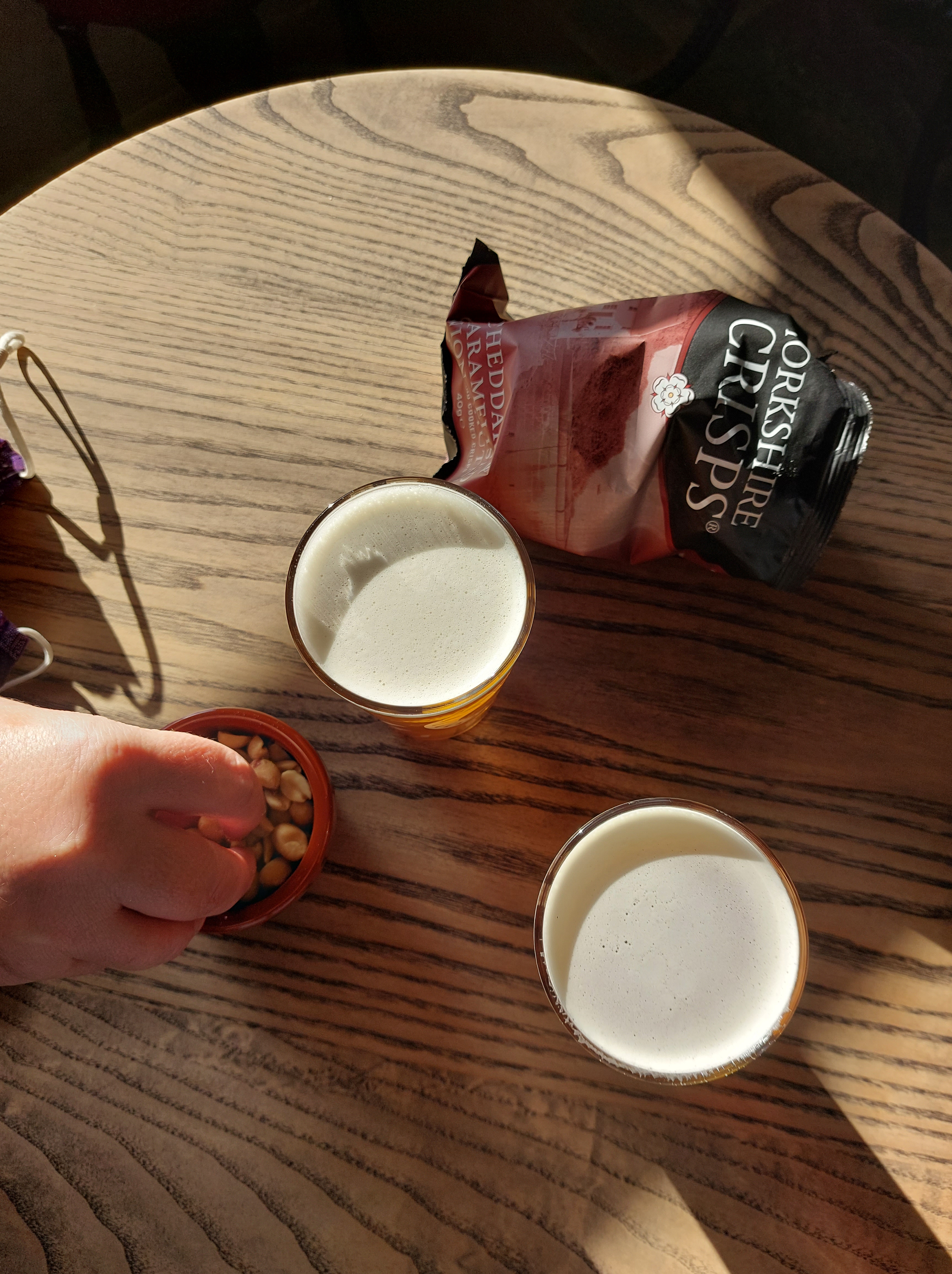 By now Mrs RM is desperate for crisps, so I get sea salt and a bowl of nuts, and it all feels pretty pubby, particularly as the beers are both cool and crisp (3+). I’ve no idea who makes York Guzzler these days, but there’s a decent beer hiding in there if it sells within a month.