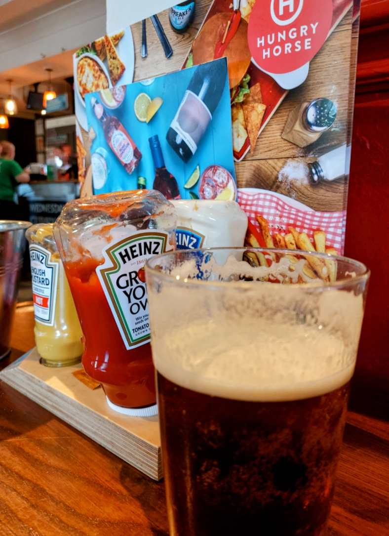 OK, the pub is fully of folk enjoying life (aka, chips) and that will never do, but this is a pint I can confidently say the Southworths would rate highly.