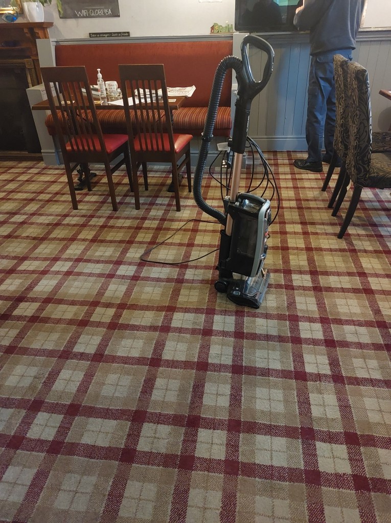At 14:02 he entered, had a can of Guinness, and moved into what I can only describe as the living room as it has a hoover in it. Fact fans will recall this is the first hoover in a pub since Mossley in 2017. Make a note.
