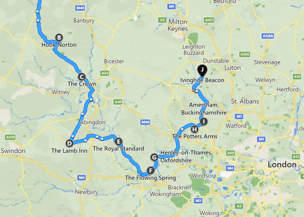 Mrs RM finished her morning’s work in Henley Spoons and started her real day job, as my chauffeur to remote Home Counties pubs.