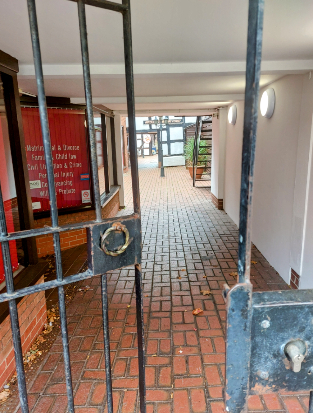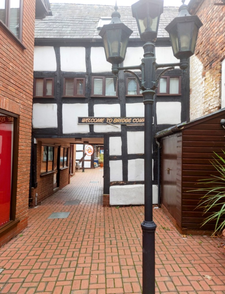 Here’s the secret entrance, marked as Bridge Court Shopping Centre.