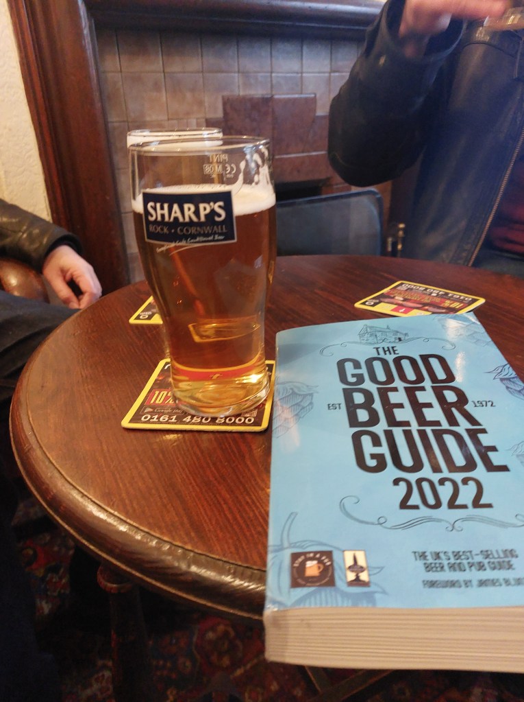 Mudgie writes “Martin Taylor had not yet received his copy of the 2022 Good Beer Guide, which is a bit of a problem when you’re trying to tick off the entries, and so he took advantage of the opportunity to photograph some of the pages of mine (top photo), although he did occasionally talk to us too.”